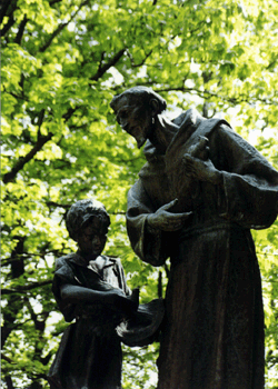 聖フランシスコは金持ちの家に生まれ、若い時は贅沢な遊びの生活を送りました。しかし、23才になった頃、イエズス様の招きをうけ、お父さんの家を出て貧しい生活を送り、神様のみ栄えと人々の永遠の救いのために自分の人生を捧げることを決めました。その時から、フランシスコは聖書の教えを文字通り実践し、できるだけ完全にイエズス様に倣うように努めました。すべてのものを失ってから、フランシスコは初めて本当の自由と、今まで想像できなかった幸せと喜びを感じました。フランシスコは多くの苦しみを体験しましたが、親しく神様と結ばれて、すべての苦しみを乗り越え、喜びに満ちた人生を送り、今でも喜びの聖人として尊敬され、愛されています。